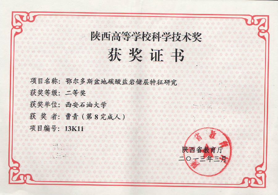 (3)曹青同志2014年获得西安石油大学教师讲课比赛三等奖。
