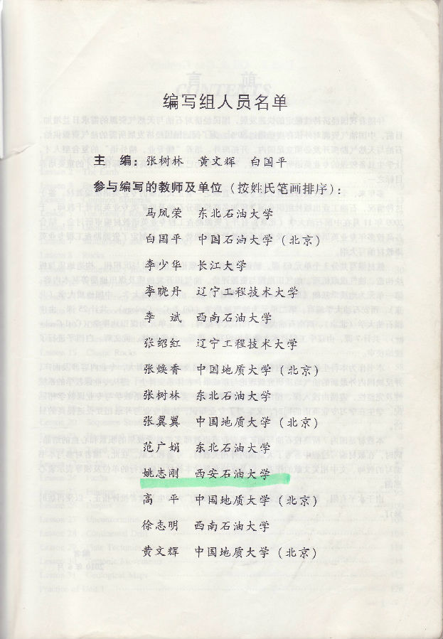 (4)课程负责人兼主讲教师姚志刚参编了高等院校石油天然气类规划教材“资源勘查工程专业英语”。